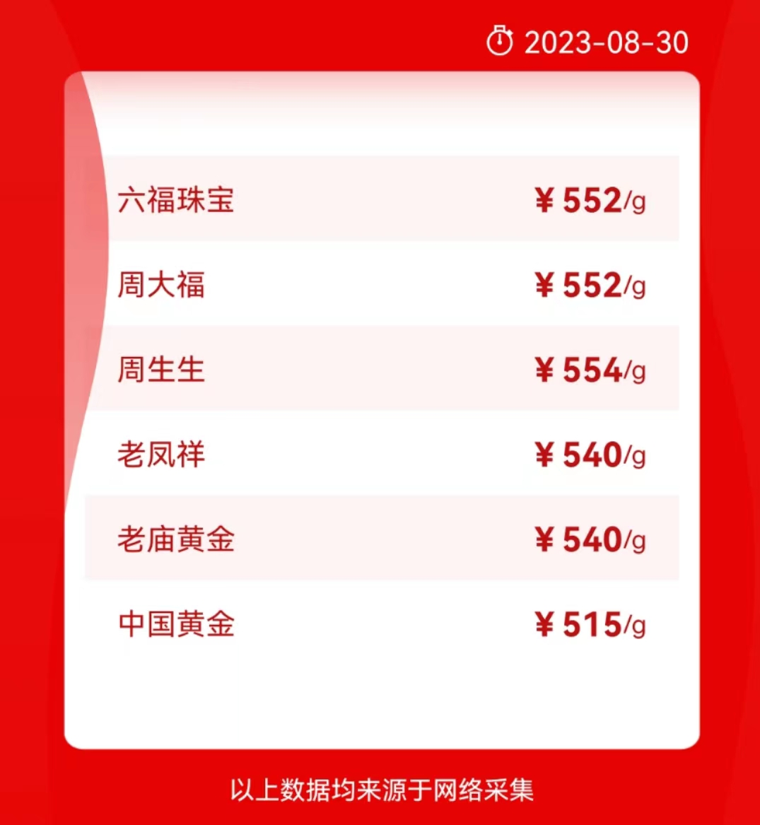金店回收黄金多少钱一克(2023年8月30日)一公斤千足金多少钱